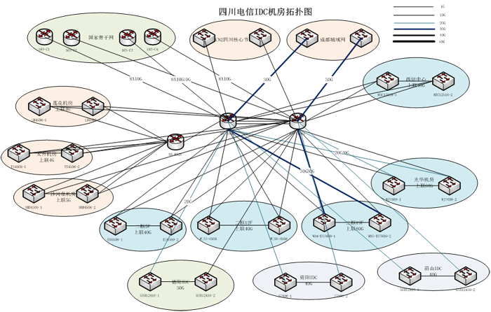 二枢纽IDC机房及四川电信IDC核心网络结构图
