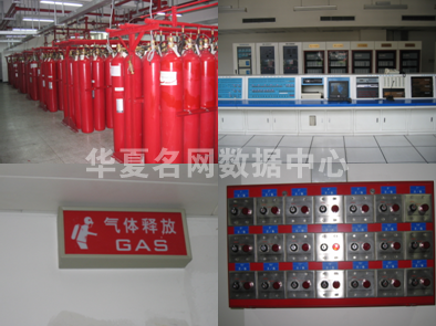 机房门窗使用达到二级以上耐火等级材料,机房消防系统使用通过消防部门验收的大楼管网式气体自动灭火消防系统,采用高灵敏度的烟雾探测系统,能在第一时间及时发现并火灾隐患,灭火药剂为洁净气体:烟烙尽,系统共用钢瓶450个,存放于大楼10楼东辅房钢瓶间。IDC三个机房楼层(5F、12F、19F)分别设立北楼与南楼2个气体消防区,灭火药剂量分别为2790、1810.4立方,使用钢瓶分别为225、146瓶。(注:烟烙尽气体构成----52%氮气、40%氩气、8%二氧化碳)