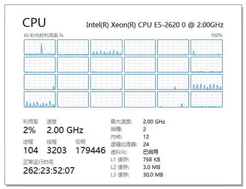 运行50个虚拟服务器的情况下CPU开